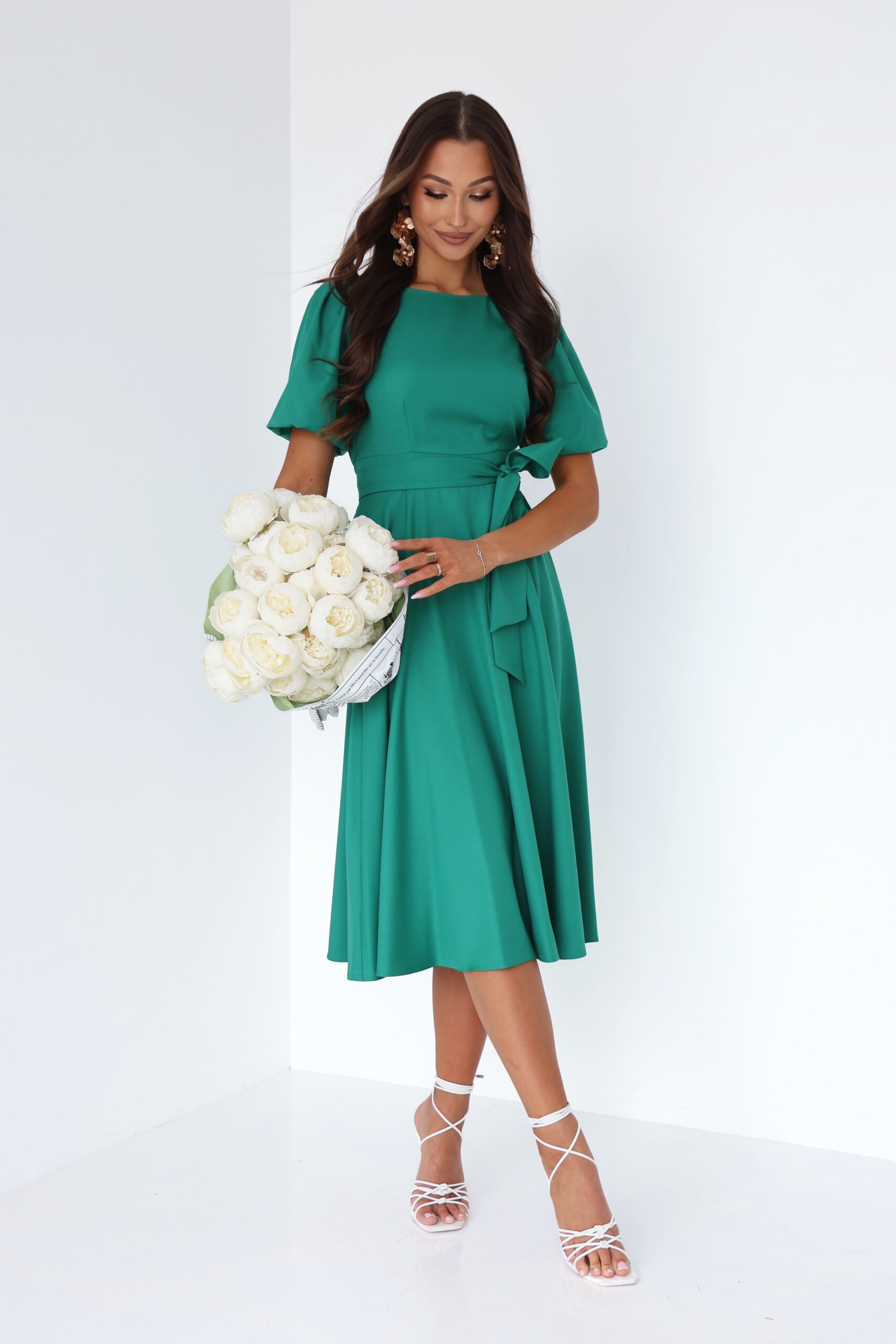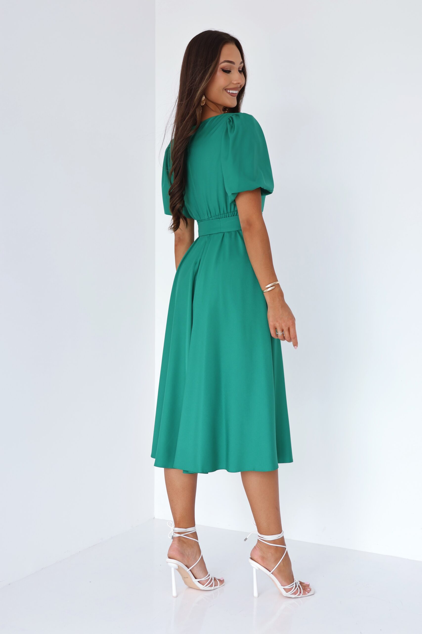 Sukienka EMILIA rozkloszowana w boku ma  wszyte kieszenie szwie. Została z cienkiej  wiskozy i pięknie leży na sylwetce. Wiązanie podkreśla wcięcie w talii. Sukienka ma  rękawy bufkowe . Uszyta z delikatnej, przewiewnej tkaniny, sukienka Emilia zapewni Ci swobodę i poczucie lekkości.  Dostępność w rozmiarach od 38 do 50 .